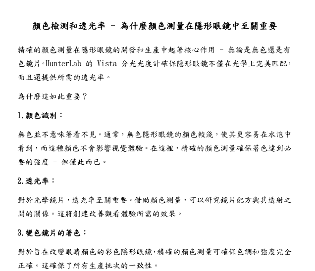 顏色檢測和透光率 - 為什麼顏色測量在隱形眼鏡中至關重要